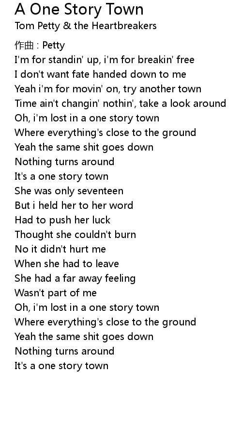 | Song | A One Story Town |