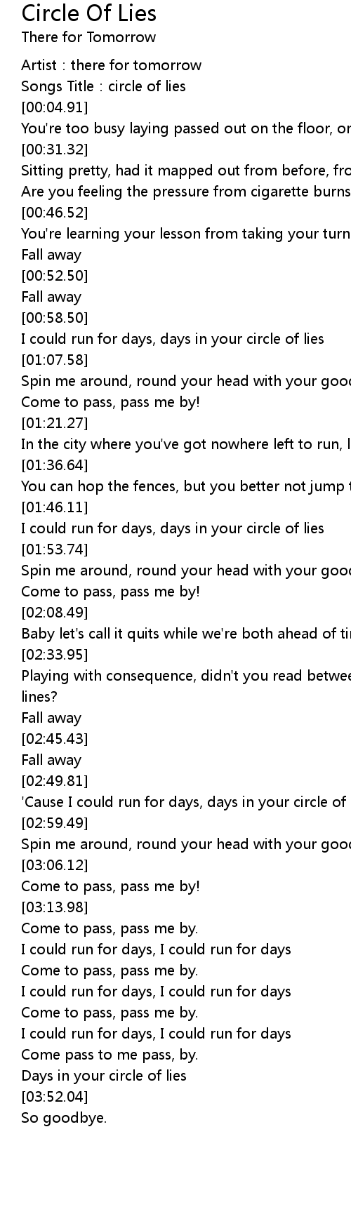 | [01:46.99] | I could run for days, days in your circle of lies |