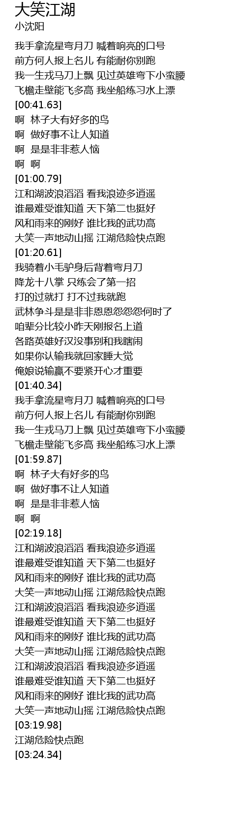 | [02:34.52] | 大笑一声地动山摇 江湖危险快点跑 |