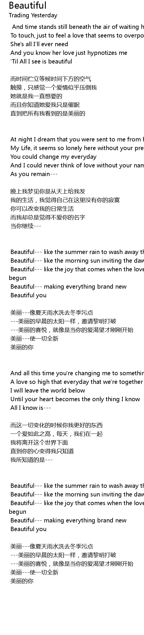 | Song | Beautiful |
