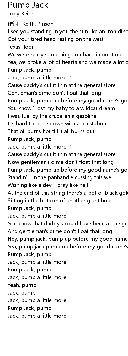 | Hey, pump jack, pump up before my good name' s gone | |