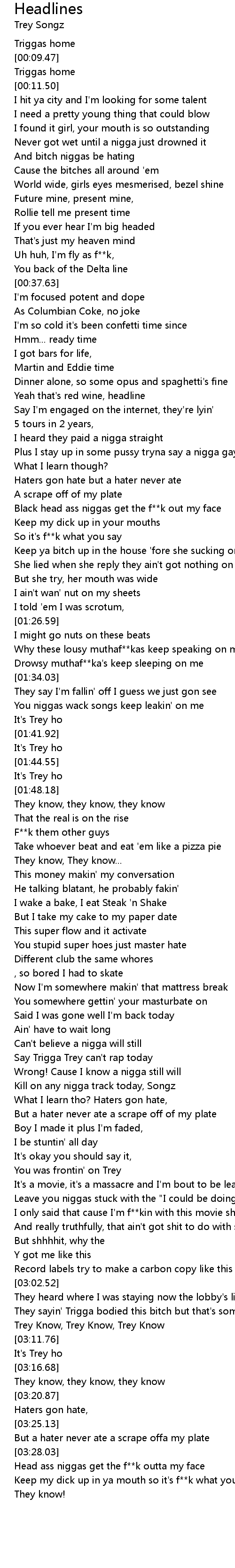 [03:06.47] They sayin' Trigga bodied this bitch but that's something Trey know...