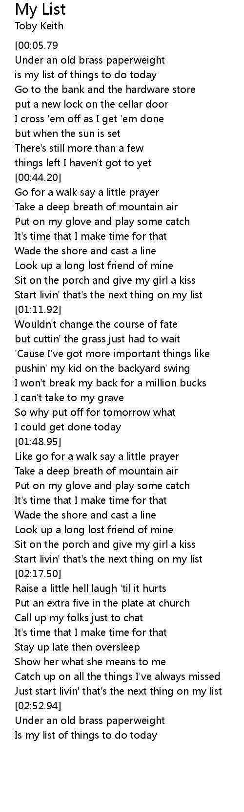 | [02:47.78] | Just start livin' that's the next thing on my list |