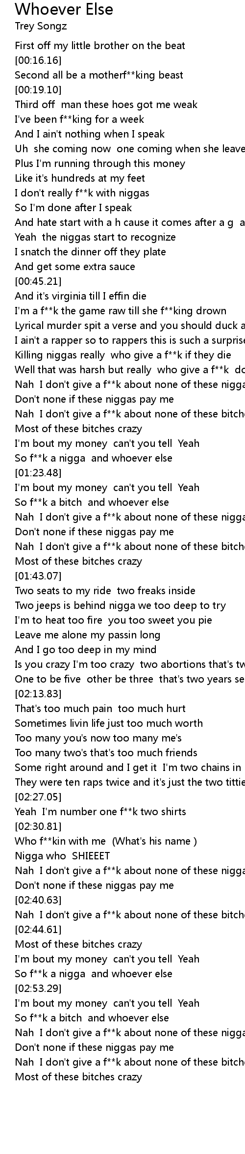 So f**k a nigga and whoever else |