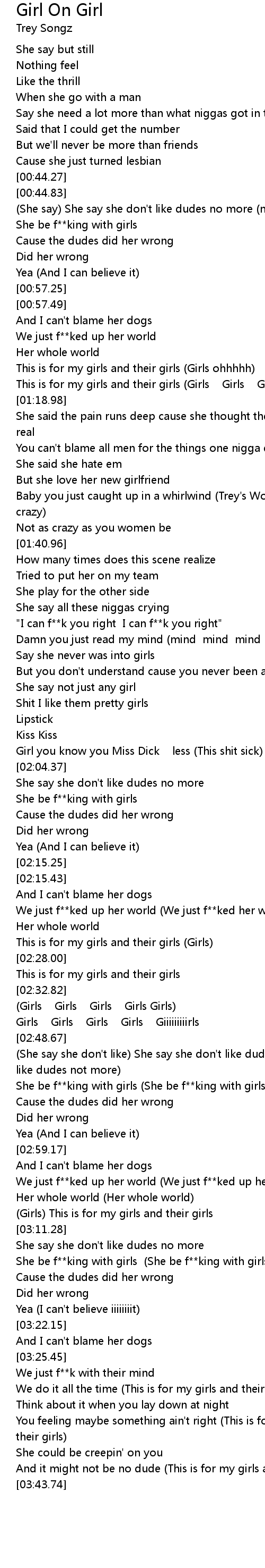 She be f**king with girls (She be f**king with girls) |