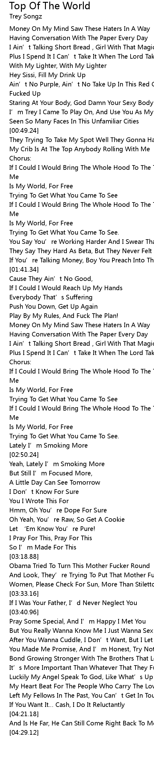 | [02:28.90] | If I Could I Would Bring The Whole Hood To The Top Of The World, With Me |