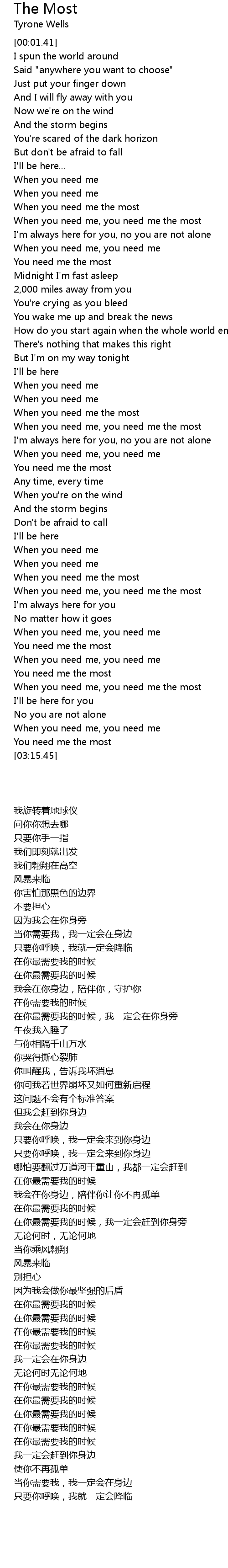 You need me the most |