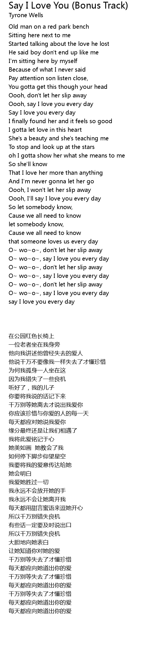 O~ wo~o~, say I love you every day |