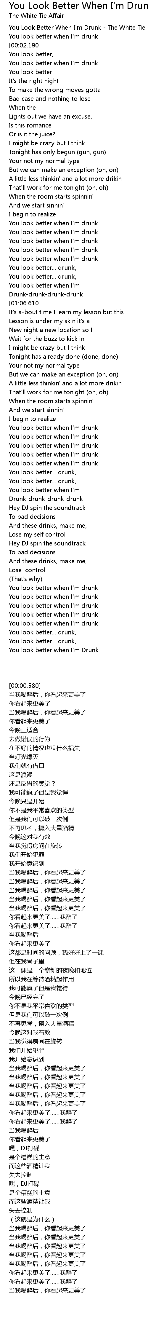 You Look Better When I'm Drunk - The White Tie |