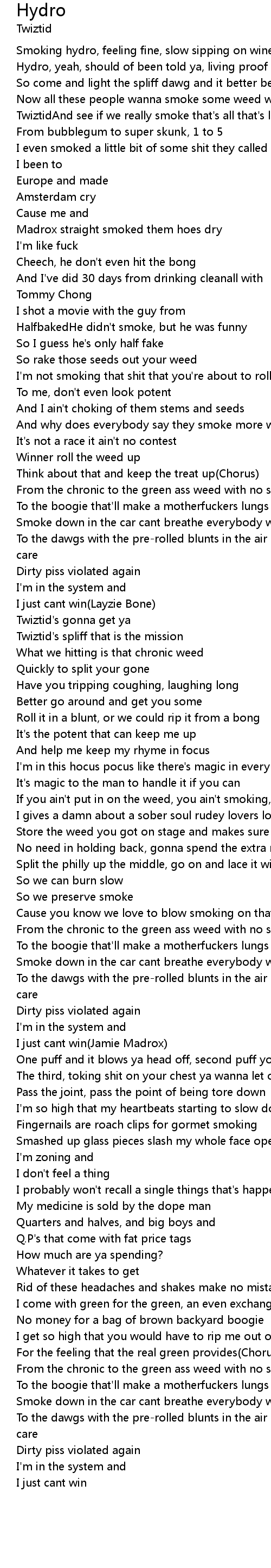 So come and light the spliff dawg and it better be that hydro(Monoxide Child) |
