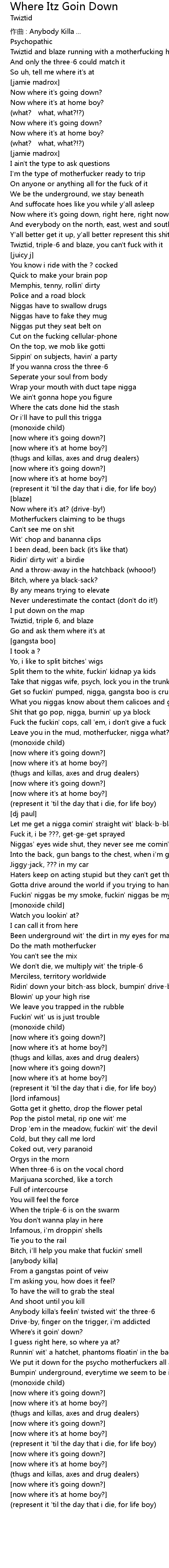 | Anybody killa's feelin' twisted wit' the three-6 | |