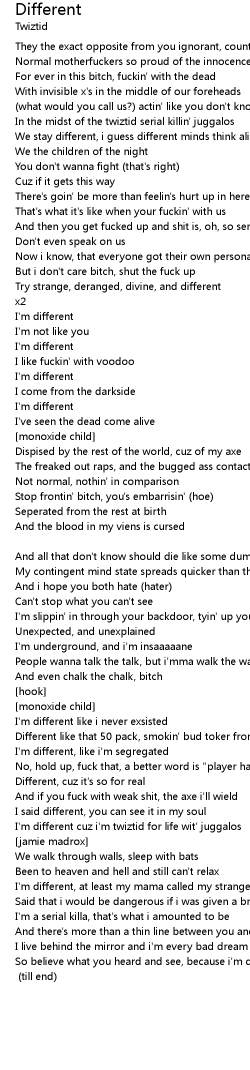 I'm different cuz i'm twiztid for life wit' juggalos |