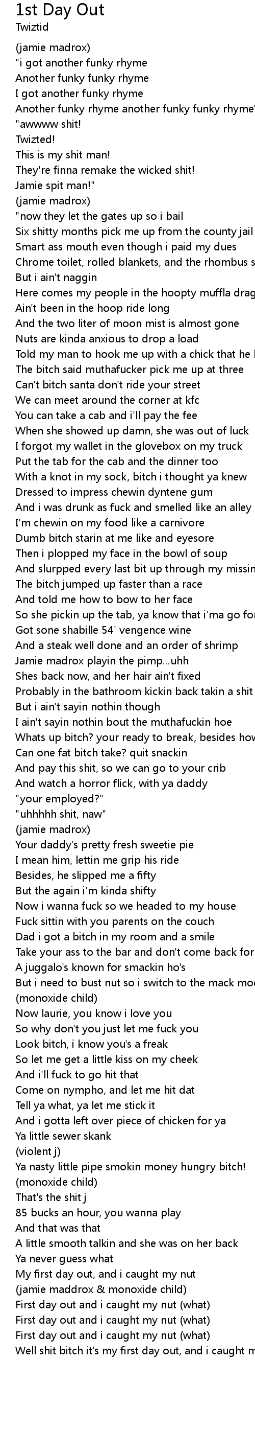 | Well shit bitch it' s my first day out, and i caught my nut 4x |