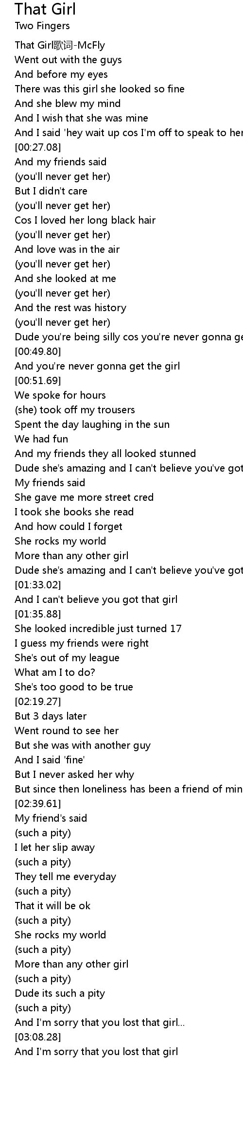 | [00:05.27] | That Girl歌词-McFly |