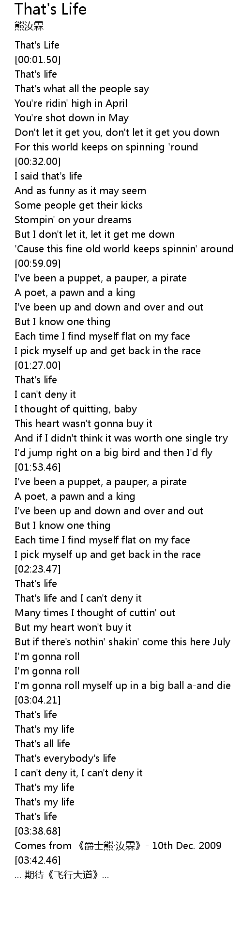 | [00:05.71] | That' s life |