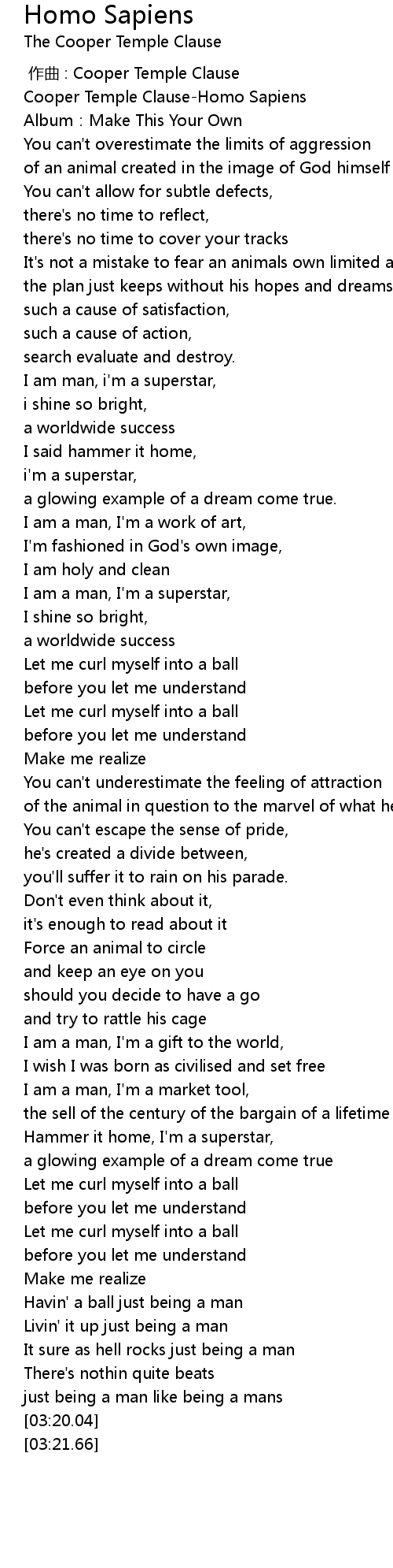 | [00:03.41] | Cooper Temple ClauseHomo Sapiens |