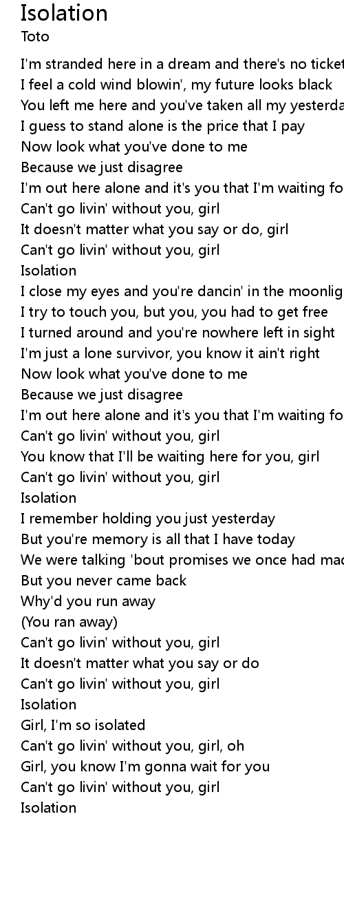 Isolation Lyrics