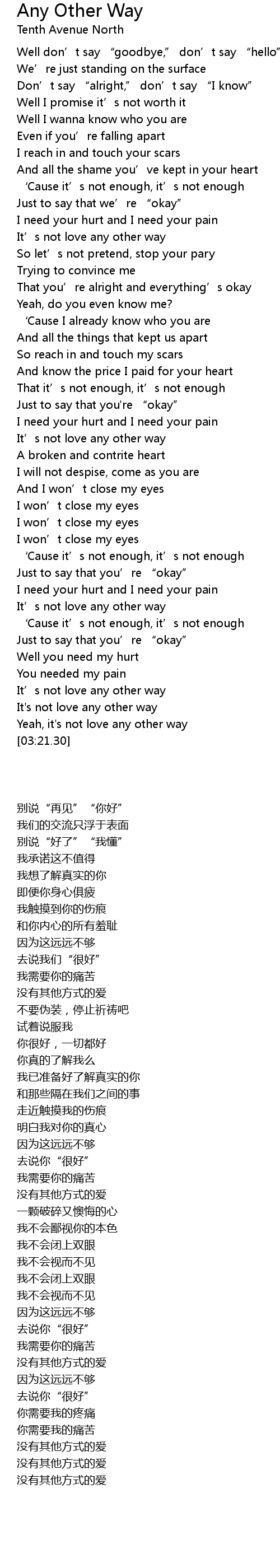 | [03:14.89] | Yeah, it's not love any other way |