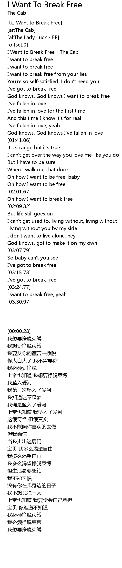 [ti:I Want to Break Free] |