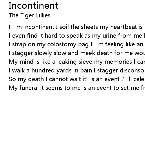 | I’m incontinent I soil the sheets my heartbeat is growing weak | |