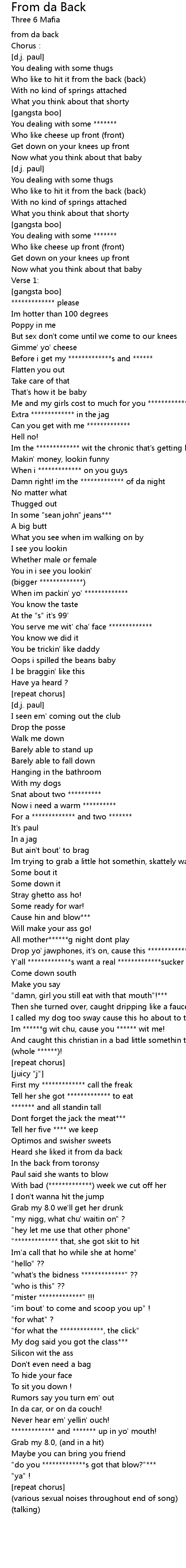 | ************* and ******* up in yo' mouth! | |