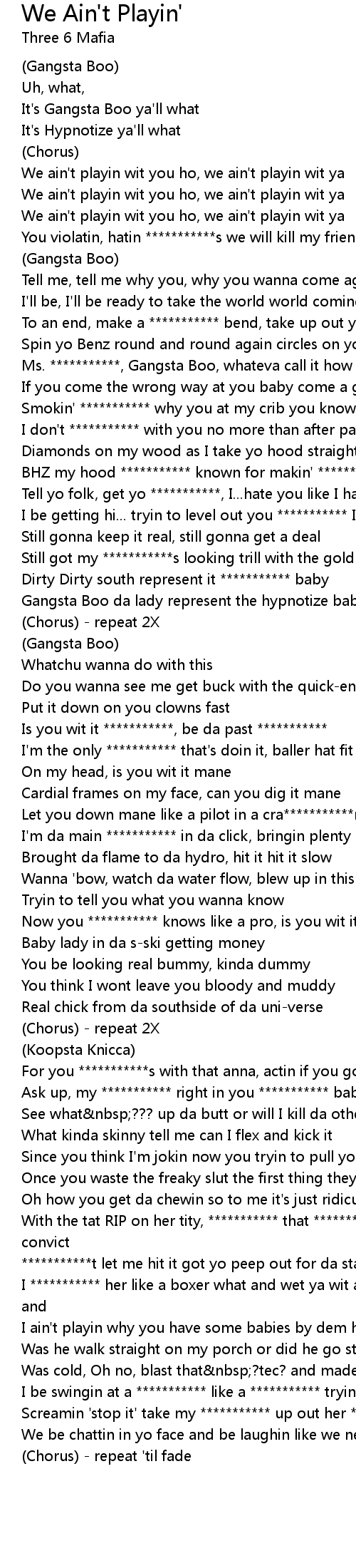 Ms. ***********, Gangsta Boo, whateva call it how it come |