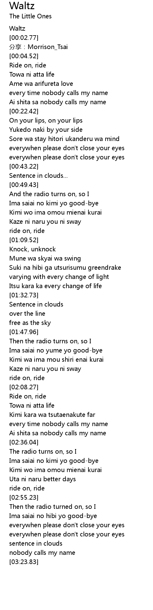| [00:01.52] | Waltz |