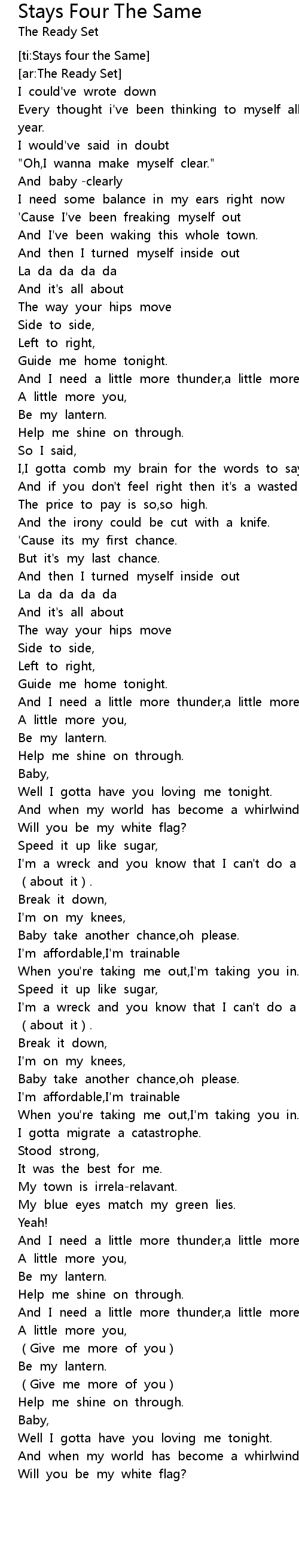 | [ti:Stays four the Same] | |