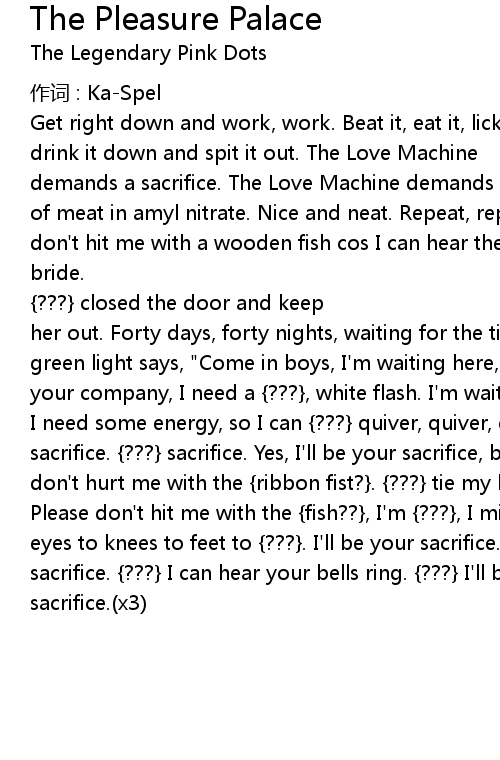 | demands a sacrifice. The Love Machine demands a sacrifice. 500 pounds | |