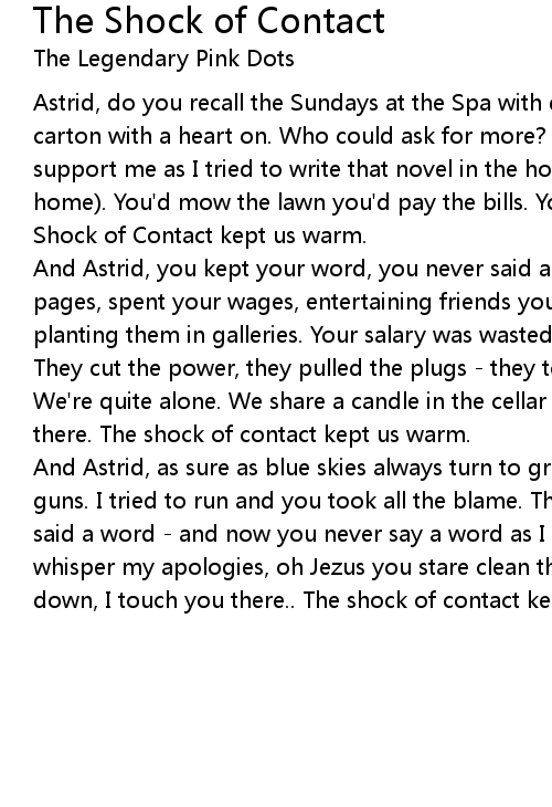 We're quite alone. We share a candle in the cellar - oooh you touched me |