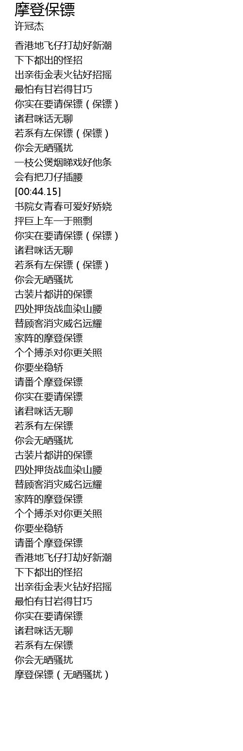 | [02:13.74] | 请番个摩登保镖 |