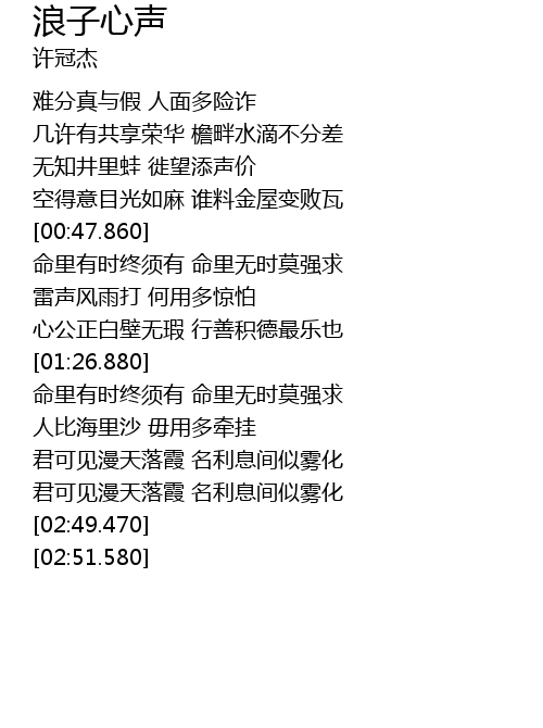 | [00:49.230] | 命里有时终须有 命里无时莫强求 |