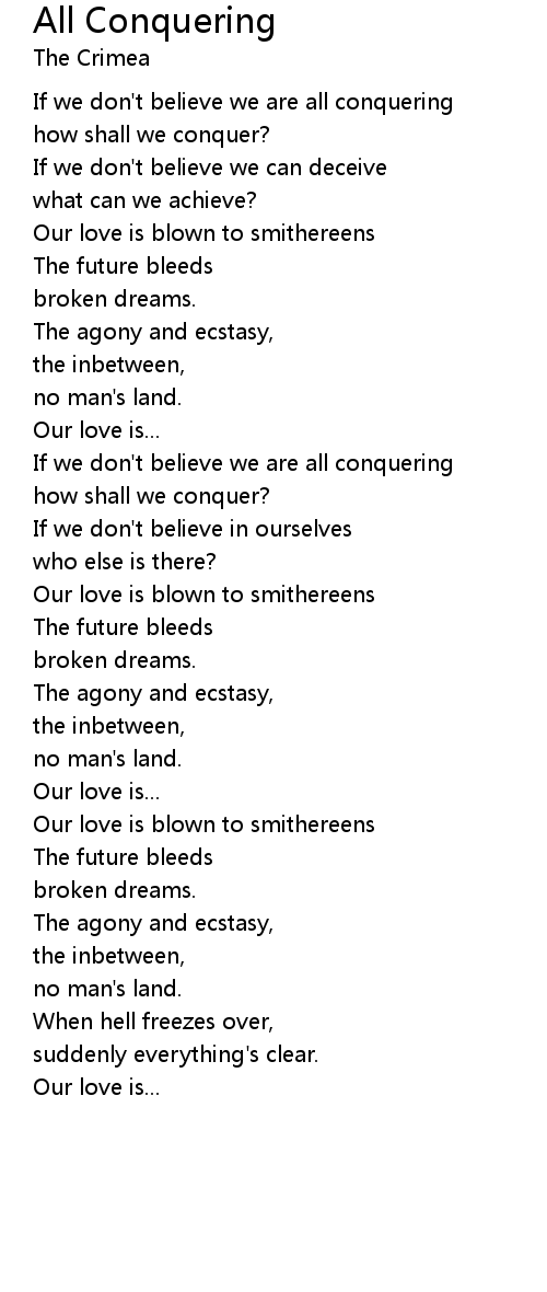 If we don't believe we are all conquering |