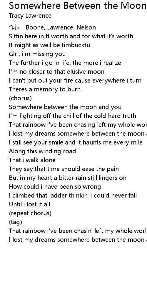 | I lost my dreams somewhere between the moon and you | |