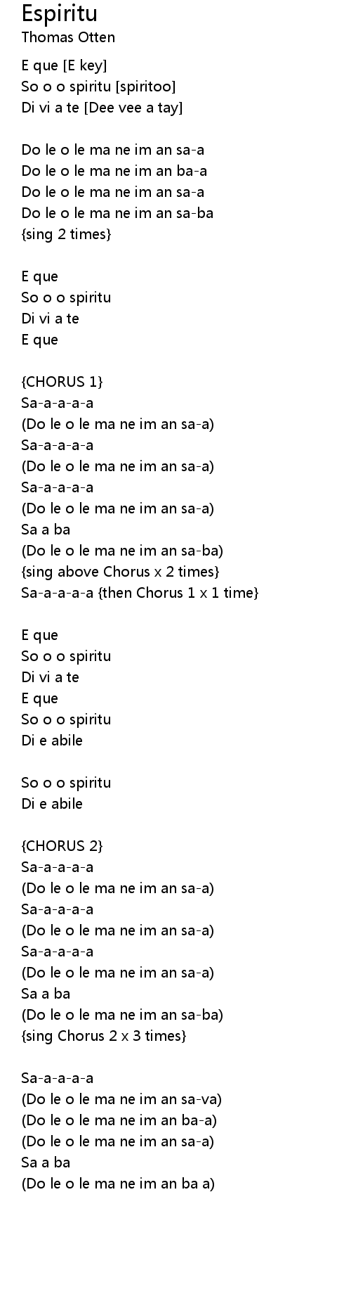 Sa-a-a-a-a {then Chorus 1 x 1 time}