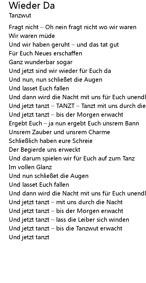 | Und jetzt tanzt – TANZT – Tanzt mit uns durch die Nacht | |