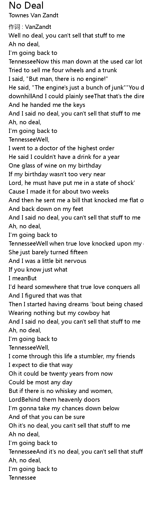 | Ah no deal, | |