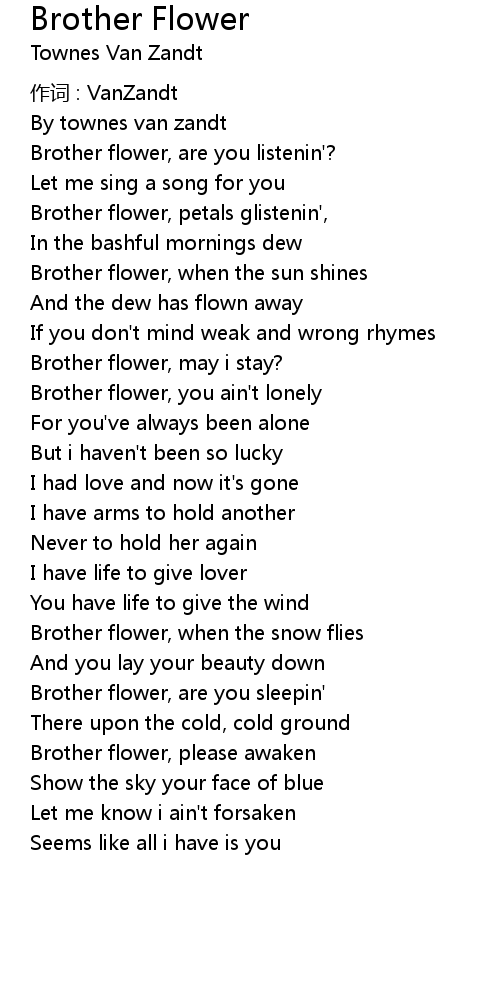 | Brother flower, you ain't lonely | |