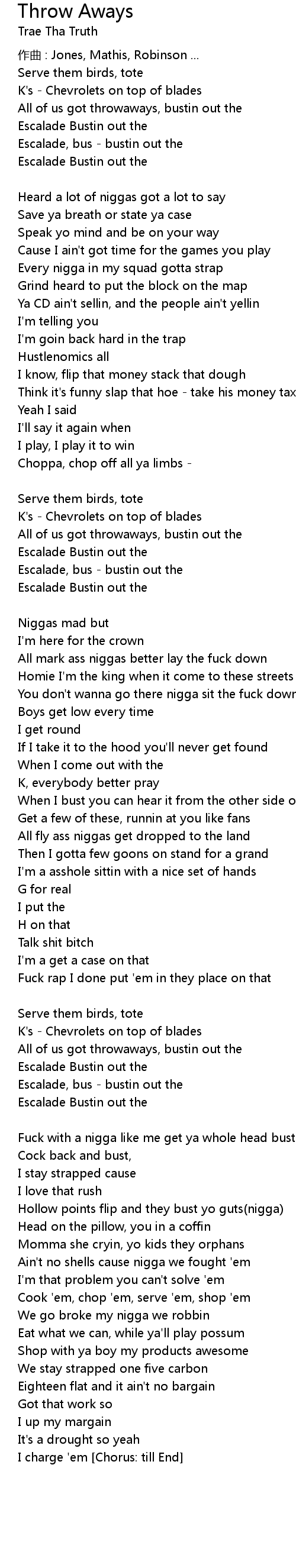 | Escalade, all of us got throwaways Verse 2: Trae | |