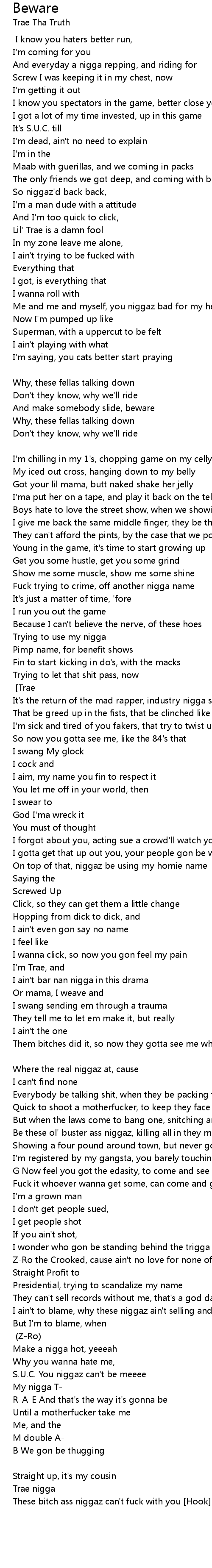 Z-Ro the Crooked, cause ain't no love for none of these niggaz |