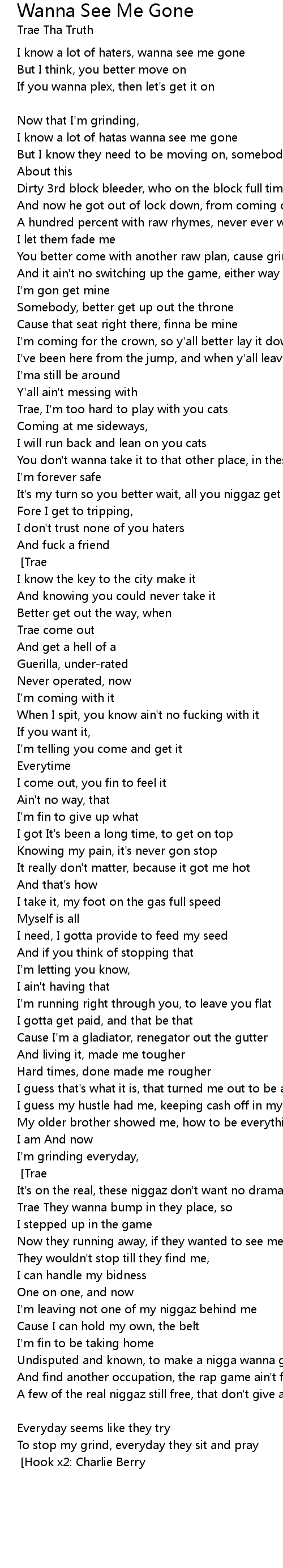 I throw the deuce, ain't no seeing you later [Hook x2: Charlie Berry] [Trae] |