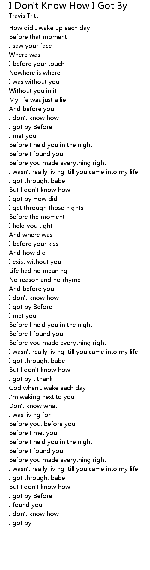 I Don't Know How I Got By Lyrics