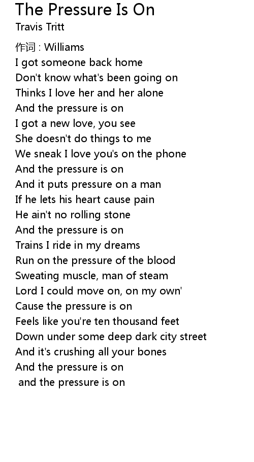 | The pressure is on[Incomprehensible] and the pressure is on |