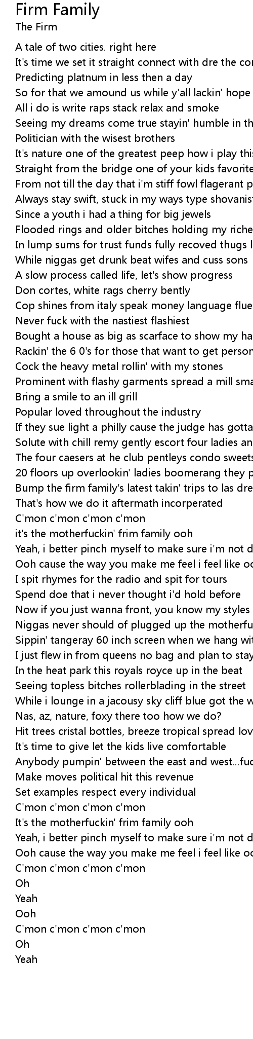 | [01:37.30] | Bump the firm family's latest takin' trips to las dregas |