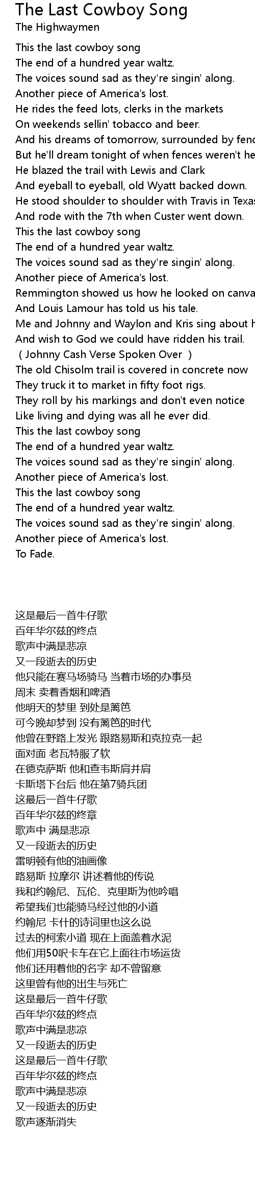 | [00:03.74] | This the last cowboy song |