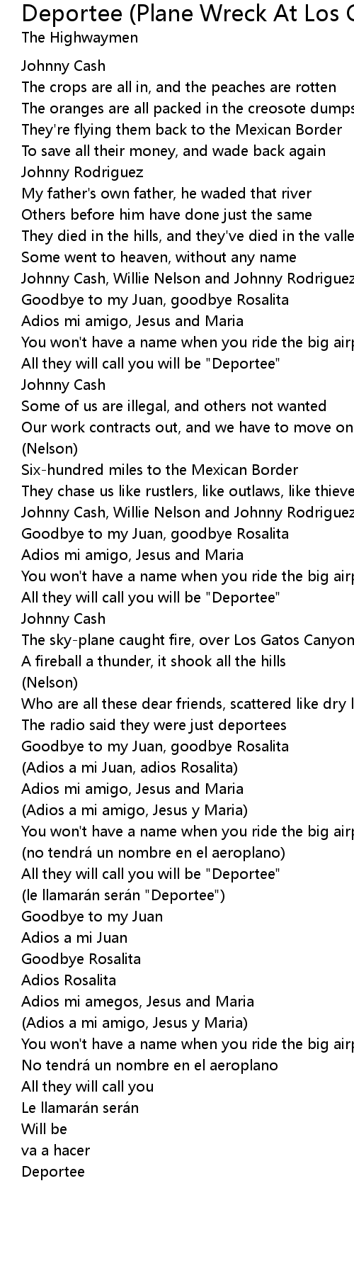 | Song | Deportee (Plane Wreck At Los Gatos) |