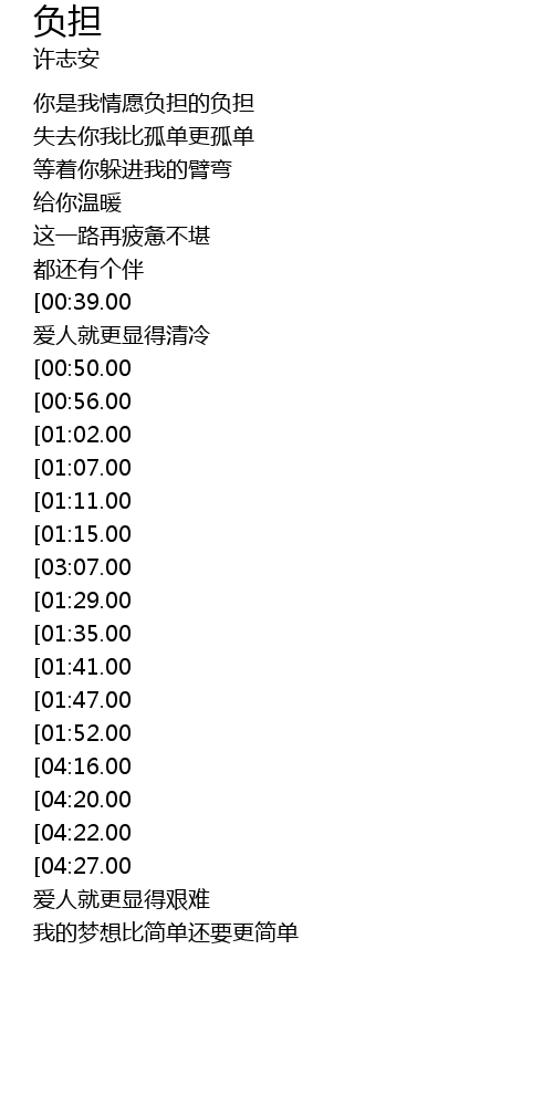 | [04:03.00][03:07.00][01:24.00] | 你是我情愿负担的负担 |