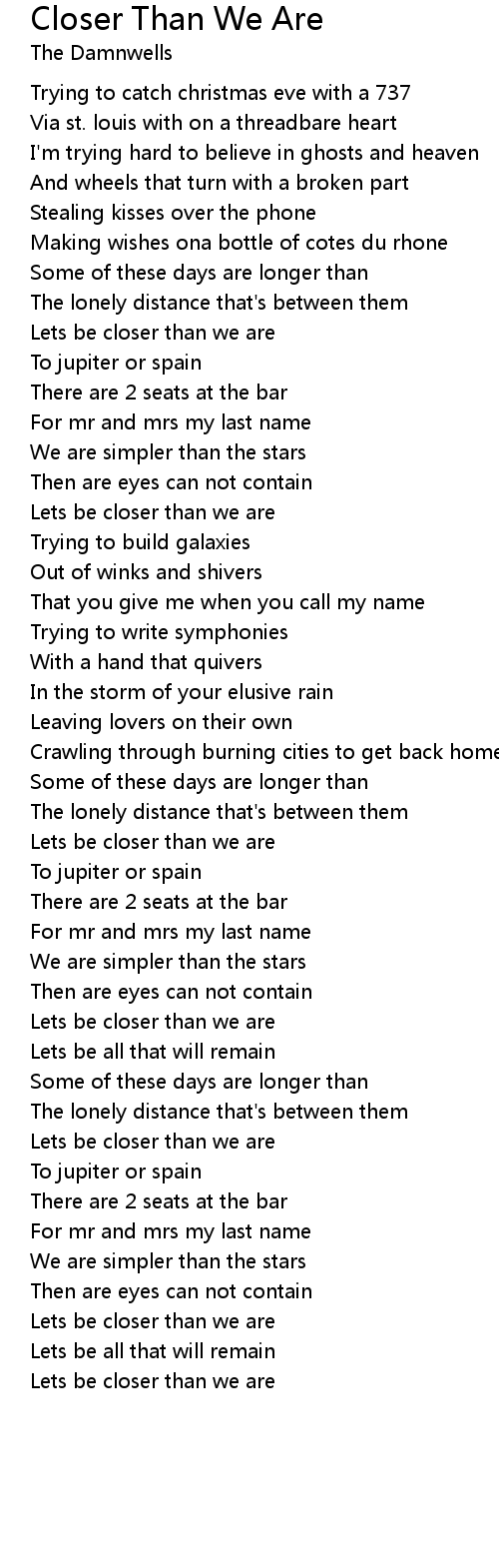 Closer Than We Are Lyrics