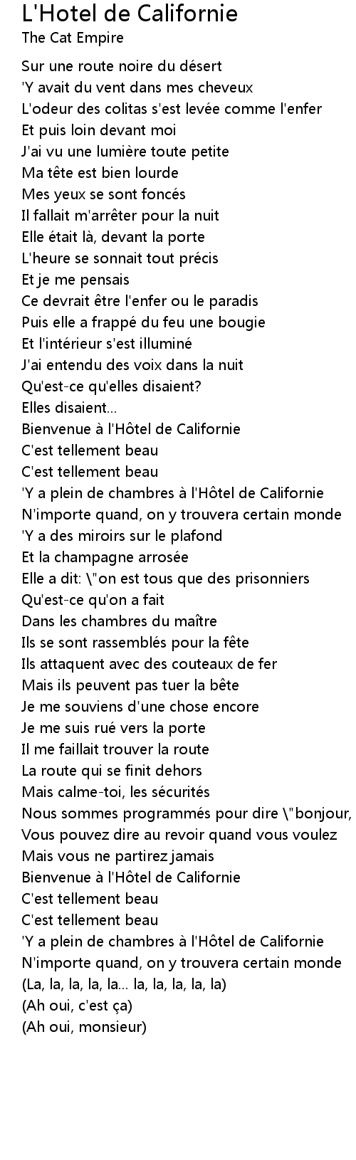 | Bienvenue a l' H tel de Californie | |