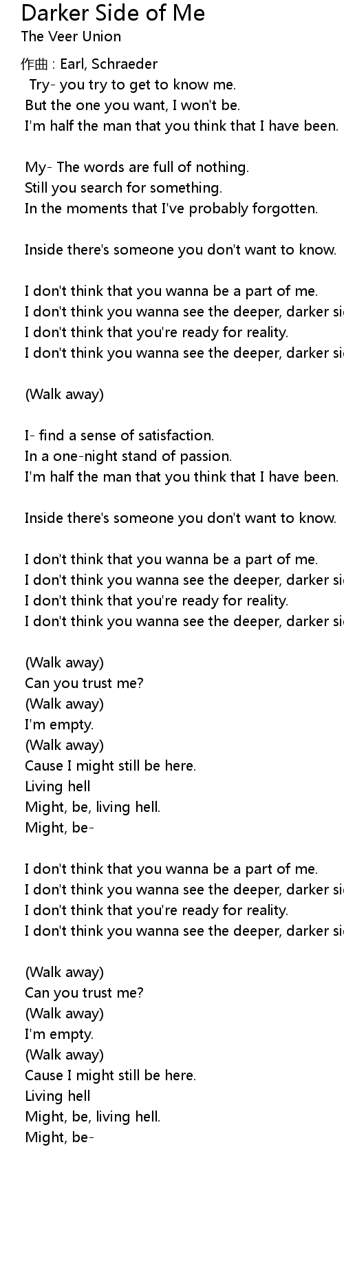 | I don' t think you wanna see the deeper, darker side of me. | |